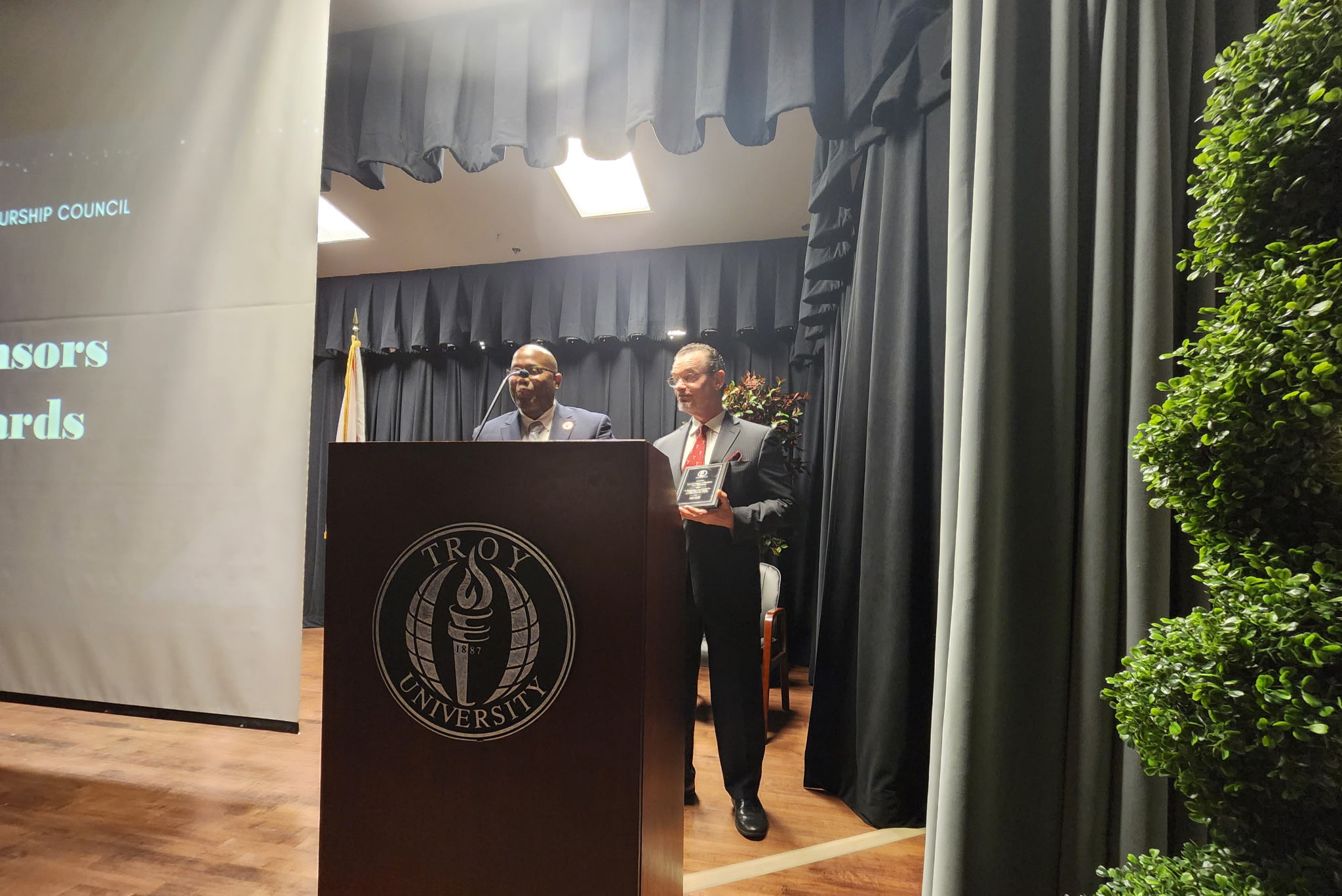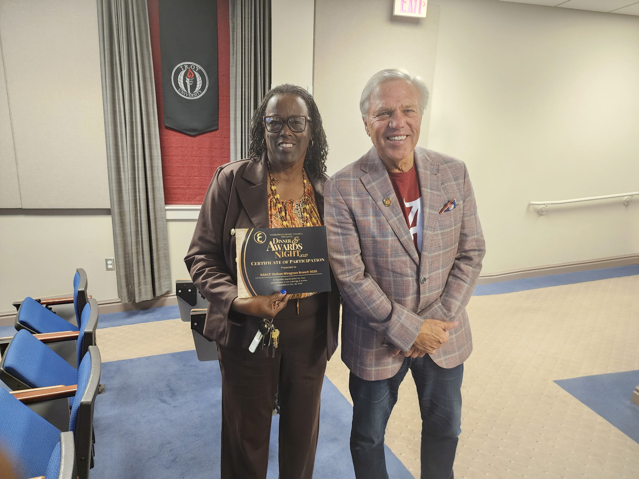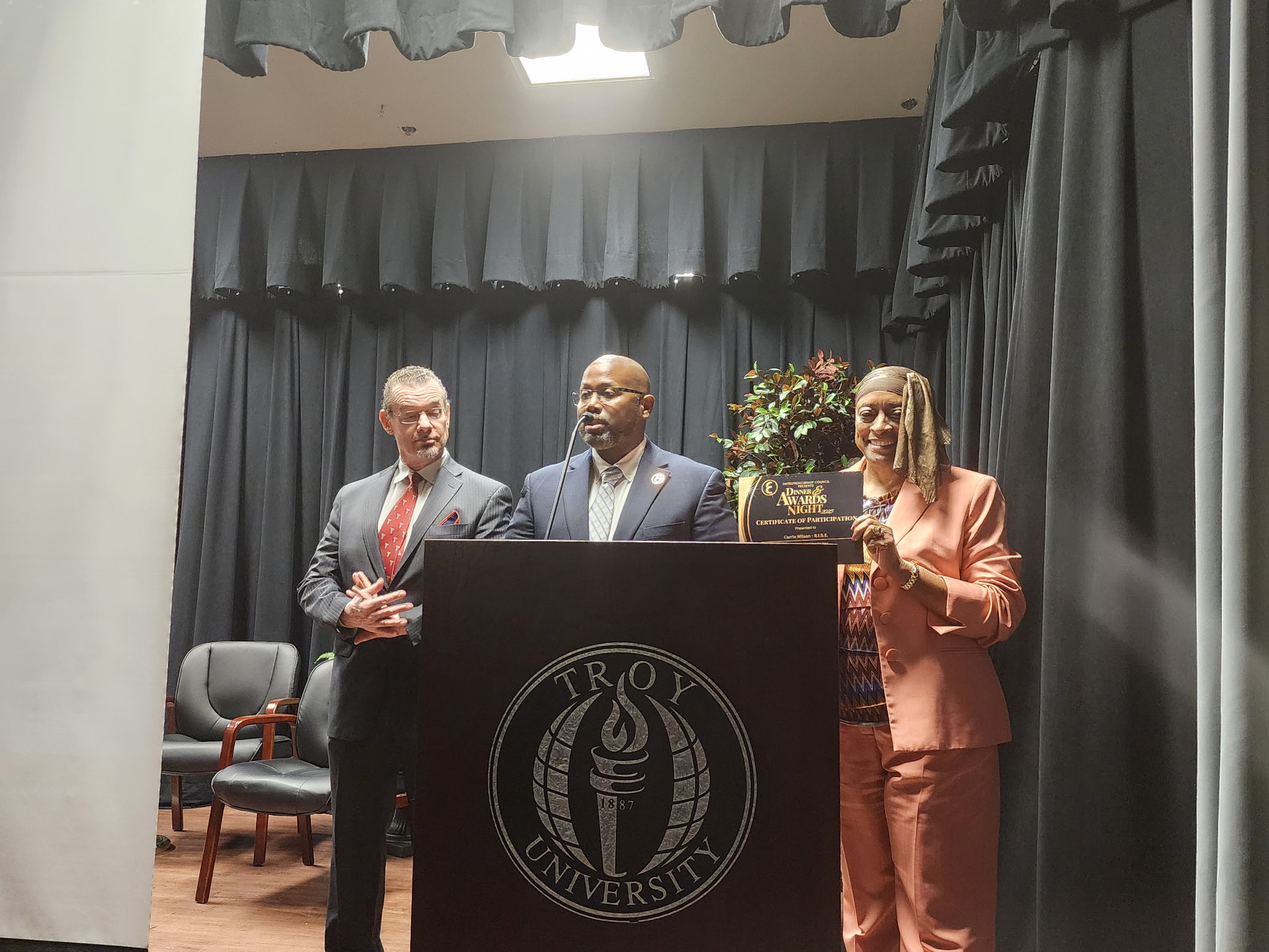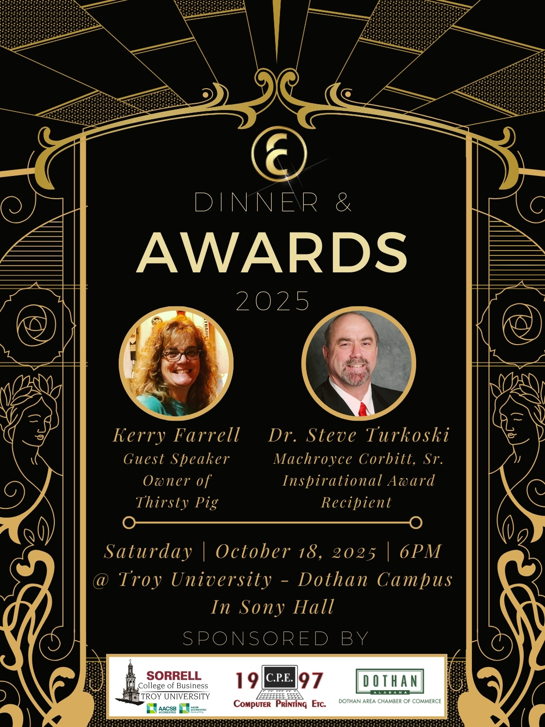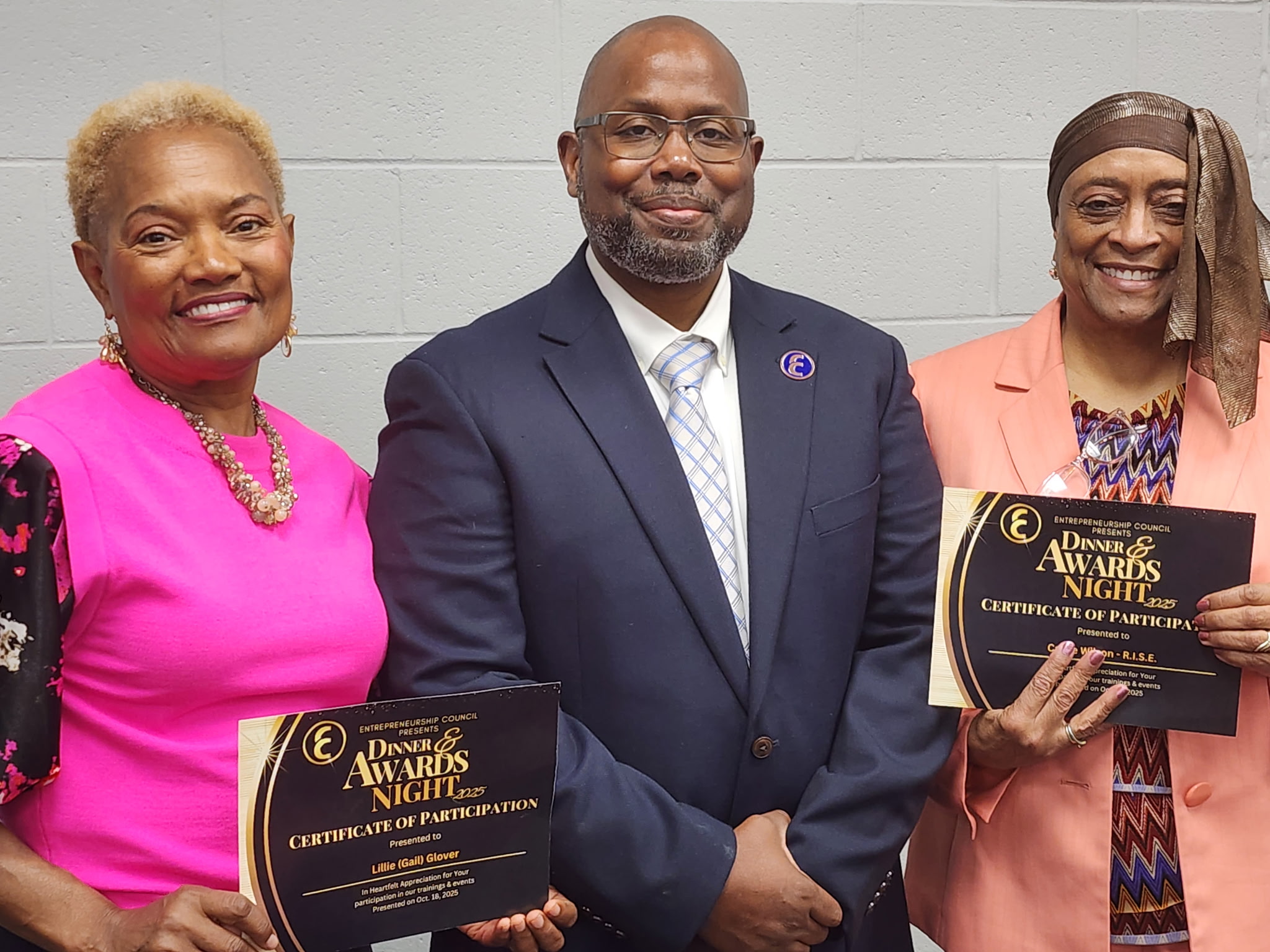 On October 18, 2025 the Entrepreneurship Council held it’s Annual Dinner and Awards Banquet at Troy University, Dothan Campus. We also partnered with Hairoglyphics Academy to hold their first graduation ceremony. The event is our final event of the year where we thank everyone for their participation and sponsorship throughout the year. During the event we also honor one community member who has provided inspiration for others to become entrepreneurs with the Machroyce Corbitt, Sr. Inspiration Award. This year’s recipient was Dr. Steve Turkoski. Mrs. Nassandra Corbitt the Founder of Hairoglyphics Academy and the current instructor presented her students with their diploma. Our speaker for the event was Mrs. Kerrie Farrell, owner of the Thirsty Pig. Mrs. Farrell spoke about having a Why that is strong and that will help you continue when times get hard. The Entrepreneurship Council donated $500.00 to Chrysalis A Home for Girls on behalf of Mrs. Farrell. After the event we had Dinner and it was an opportunity for everyone to network and get to know one another.