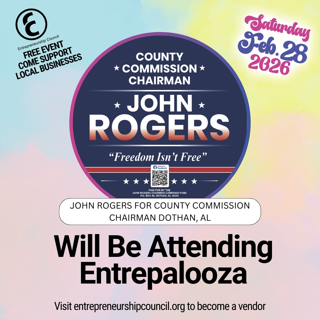 Entrepalooza Business Festival and Family Affair is coming. This event will be held February 28, 2026, in the quad of Troy University’s Dothan Campus. We will have live music, speakers, line dancing, DJ’s, bounce houses, and food trucks, with colleges and local businesses also represented.